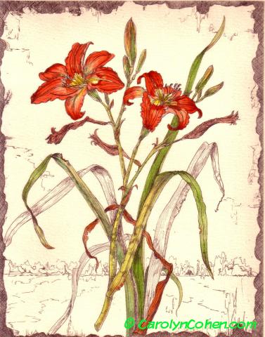 Daylily Etching and watercolor on cream rag paper Edition of 50 Image size 10"h x 8"w unframed $197Available