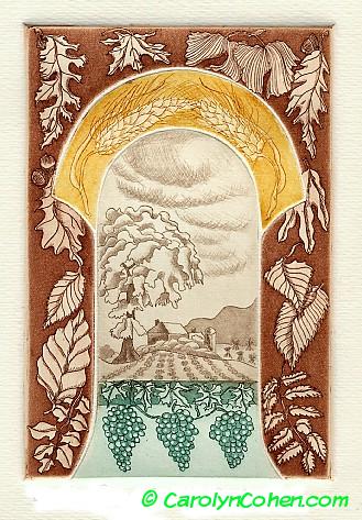 Etching and acquatint on cream rag paper, multiple color inks, printed from three assembled plates